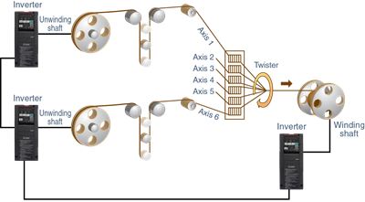 - Dancer PI automatic tuning function – Optimum PI gain is automatically set by the inverter, reducing system startup time.